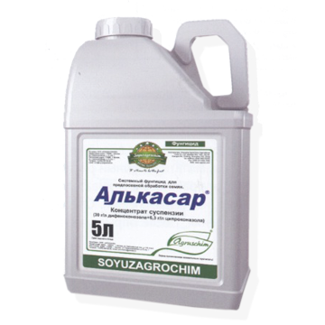 Алькасар, КС является двухкомпонентным системным фунгицидным препаратом. Его действующие вещества – дифеноконазол и ципроконазол – идеально дополняют друг друга и позволяют эффективно бороться как с поверхностными, так и с внутренними инфекциями зерновки. Дифеноконазол обладает системными свойствами, но менее растворим в воде, чемегосмесевой партнер ципроконазол. Вследствие этого поглощение дифеноконазола семенами и ростками происходит постепенно; большая часть этого компонента сосредоточена ближе к основанию стебля, обеспечивая длительную защиту против различных корневых гнилей и болезней основания стебля. Ципроконазол также обладает системным действием, но быстрее поглощается и перераспределяется вверх по растению, обеспечивая эффективную защиту нового прироста и формирующегося колоса.